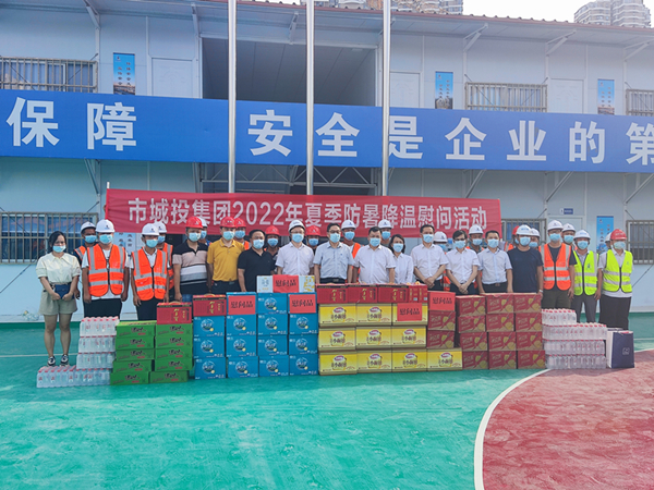 7月12日下午,市城投集團公司總經(jīng)濟師邢耀霖一行來到新建居住項目(國博C4地塊)工程總承包(EPC)項目開展送清涼活動。房產(chǎn)集團公司總經(jīng)理陳峻陪同慰問。